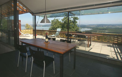 Die Wohnung steht inmitten einer Kulturlandschaft der besonderen Art, inmitten dem Ambiente eines Künstlerpaars, mit einem fantastischen Ausblick auf die Rebberge, den Murtensee und das gesammte Alpen-panorama. Eine wohltuende Weite und ein Klima, das den milden Temperaturen vom Tessin und Wallis nahe kommt, tragen zu einem erholsamen Aufenthalt bei. Lebendige Farben und eine gekonnte Kombination von Traditionen und Moderne, verbinden sich auf harmonische Weise mit dem efeu-überwachsenen Hinterhof.